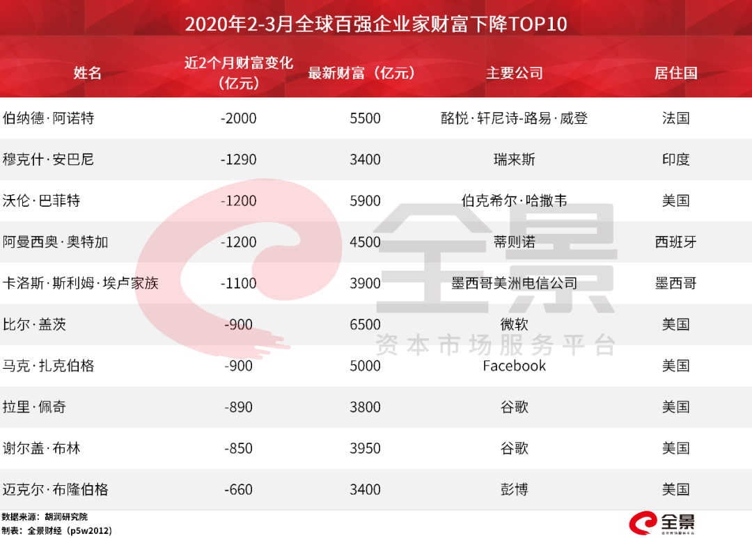 2020年2月-3月,正是全球疫情扩散、传播的高峰期,且全球资本市场不断上演史诗级暴跌。据胡润研究院的特别报告显示,短短2个月,全球百强企业家财富损失金额高达2.6万亿元,相当于每人每天损失逾4亿元。